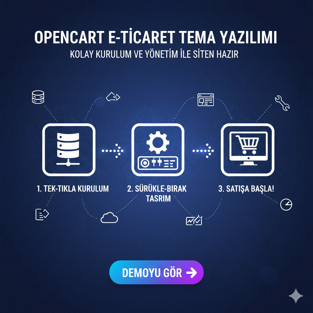 OpenCart ile e-ticaret sitenizi kolayca kurun ve yönetin. Kullanıcı dostu arayüz, güçlü özellikler ve özelleştirme seçenekleriyle satışlarınızı artırın.
